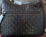 This Jack Georges crossbody bag is a stylish accessory for any woman. Made with hand-stained buffalo leather and embossed with a woven pattern, it is both durable and fashionable. The exterior color is a rich brown, and the interior has enough space to hold all of your essentials. The brand, Jack Georges, is known for their high-quality leather goods. This bag is perfect for everyday use or a night out on the town. Purchase it today and elevate your wardrobe.