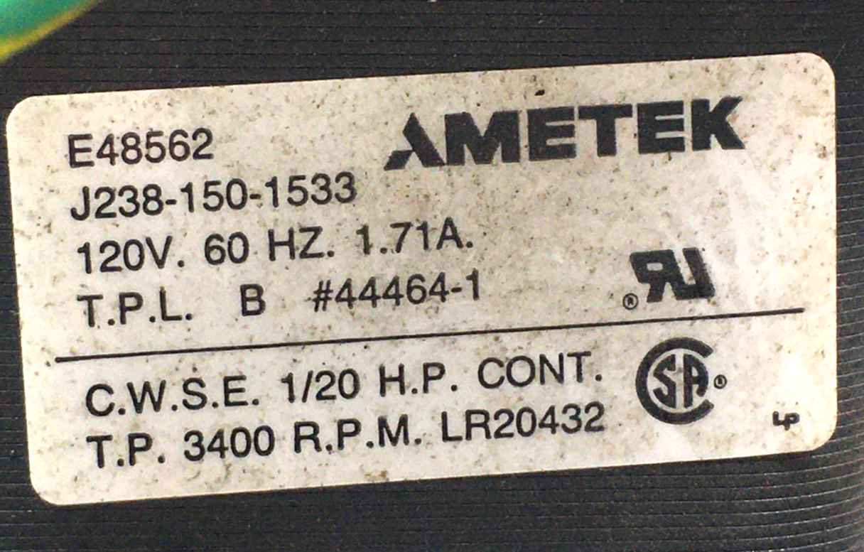 This is JAKEL 117104-01 DRAFT INDUCER BLOWER J238-150-1533 44464-1 120V 1/20HP 3400 RPM used part.
