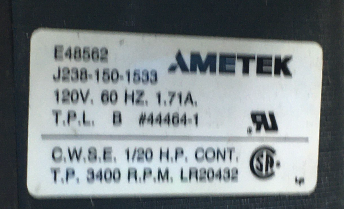 This is JAKEL 117104-04 DRAFT INDUCER BLOWER J238-150-1533 44464-1 120V 1/20HP 3400 RPM used part.