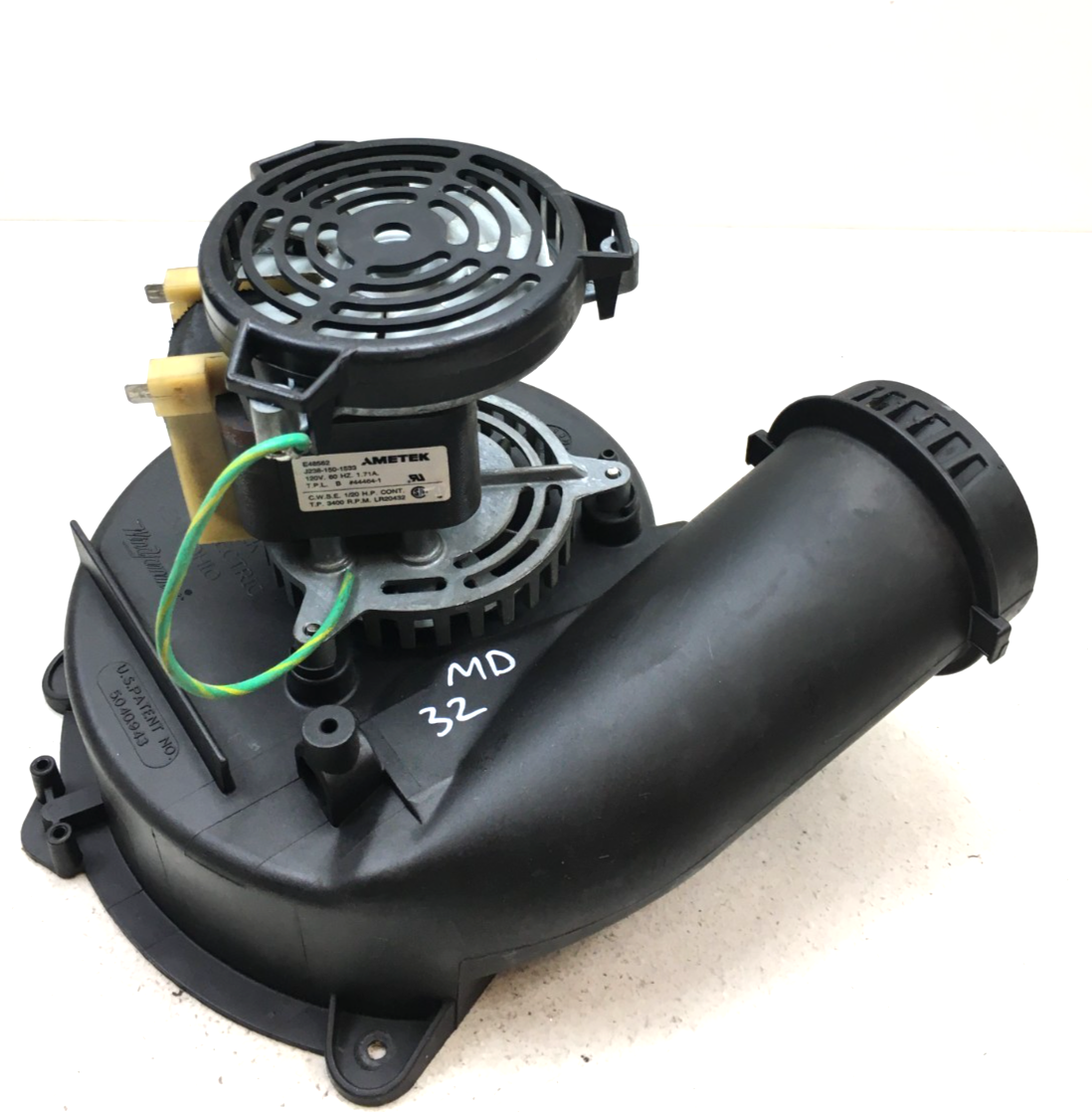 This is JAKEL 117104-04 DRAFT INDUCER BLOWER J238-150-1533 44464-1 120V 1/20HP 3400 RPM used part.