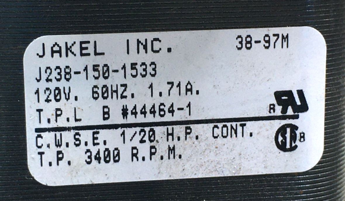 - JAKEL J238-150-1533 Draft Inducer Blower Motor 44464-1 120V 1/20HP used #ML243