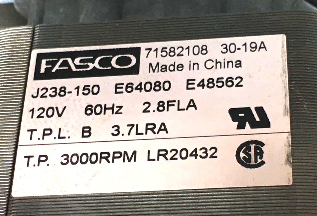 This is JAKEL J238-150 Inducer Blower Motor Assembly 71582108 70582690 Goodman 0171M00001 120V 3000 RPM used part.