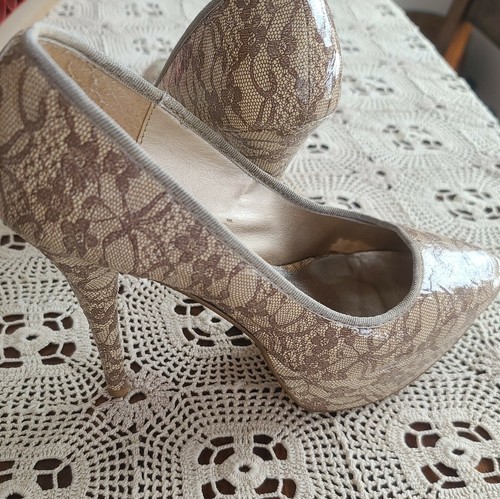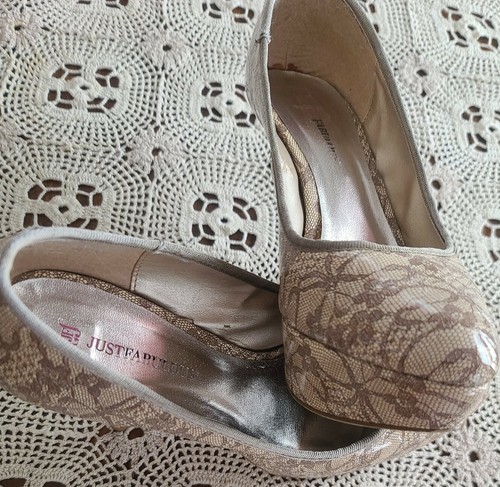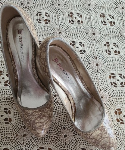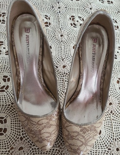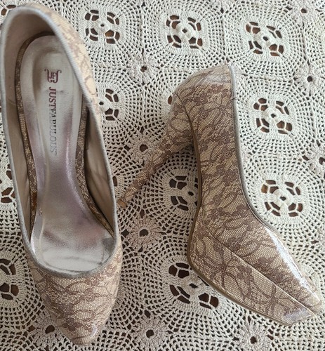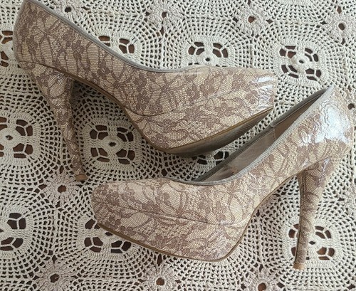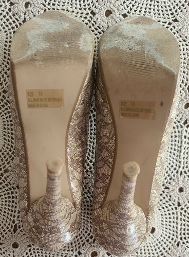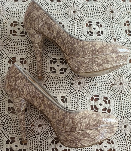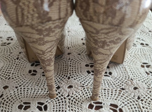 - JF Just Fabulous ~ Women's Size 10 ~ Tan w/Lace ~ 5" Hi Heel ~ Platform Shoes