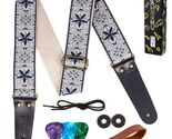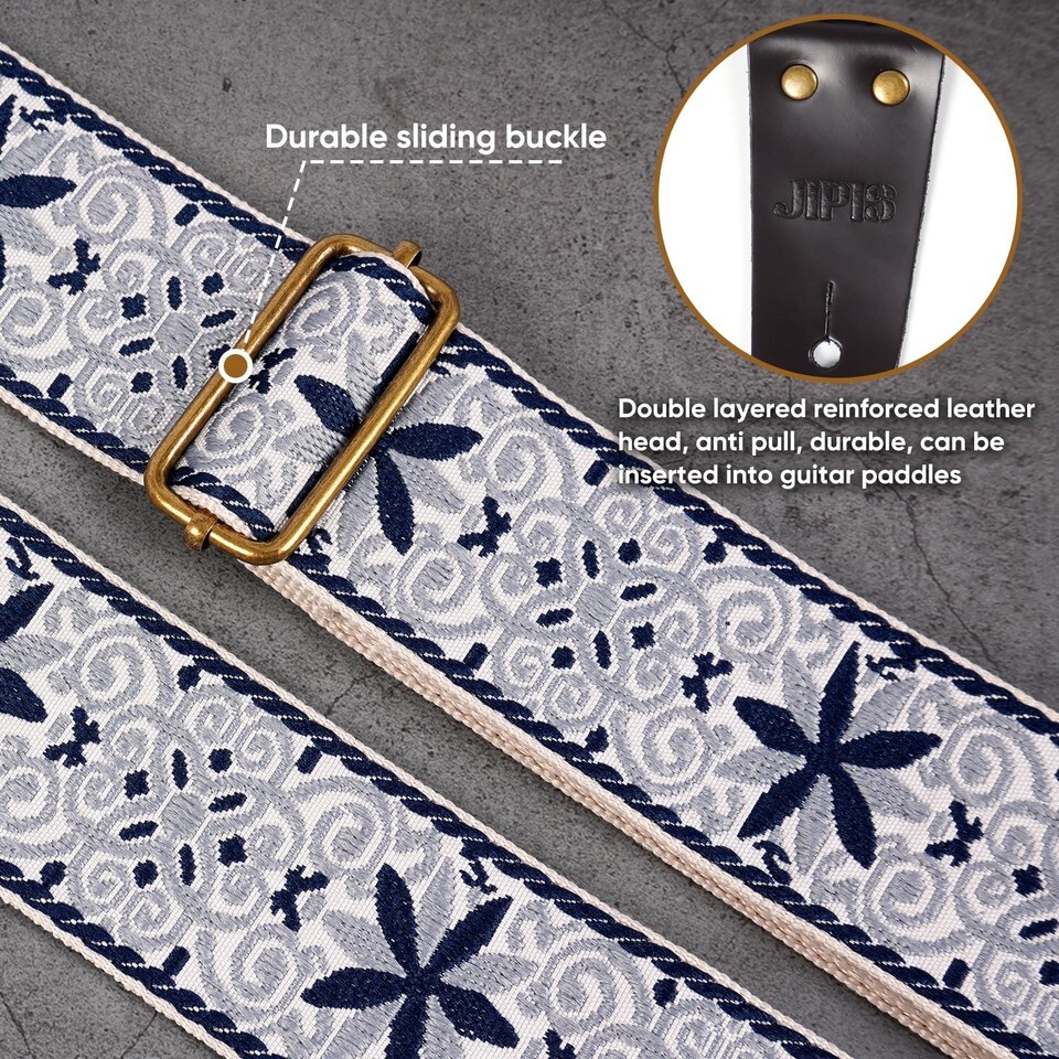 Creative petal embroidery pattern, exquisite and high-end, available in brown/blue, strong and durable Adjustable length, equipped with emphasis buckle, adjustable range: about 35 "-59" (89cm-150cm), convenient and comfortable. The width of the shoulder strap is about 2 "(5cm) Premium leather ends, can be used for a long time without breaking. Gift: Accessories for guitarists, including 3 Picks, 2 anti slip locks, and 1 headband, suitable for acoustic guitars and classic guitars! Best Gift Set: Guitar Strap * 1, Strap * 1, Headband * 1, Anti slip Buckle * 2, Guitar Picks * 3, Suitable for all guitarists.