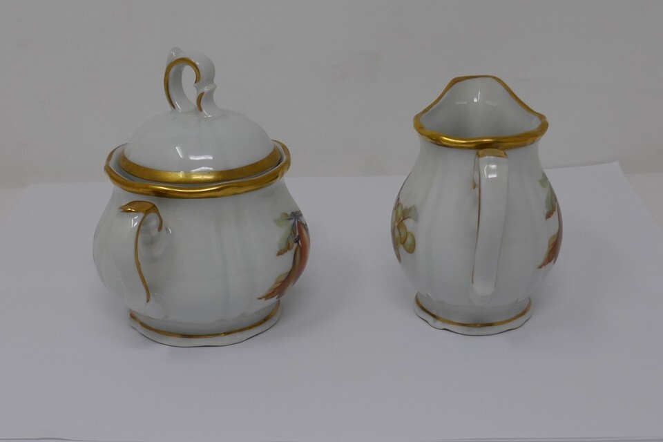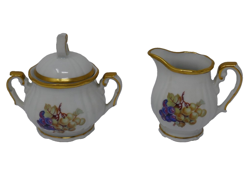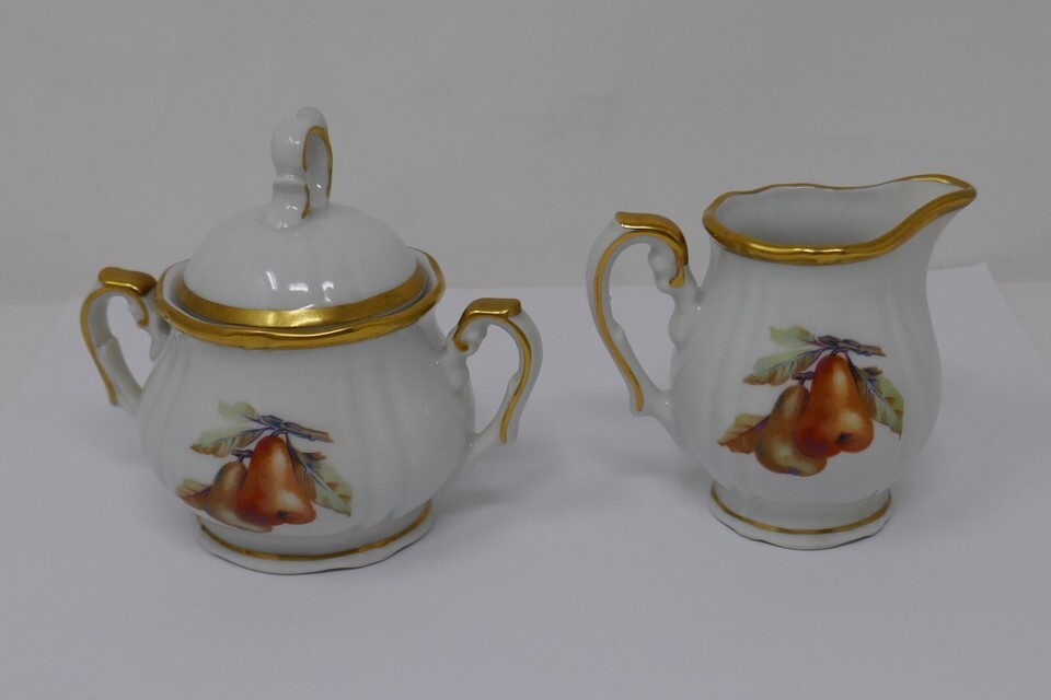 - JKW West Germany Creamer & Sugar Bowl Fruit with Gold Trim Fine Porcelain