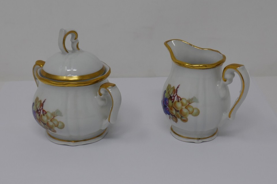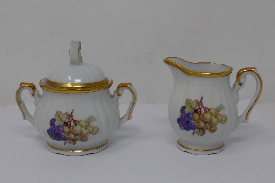 JKW West Germany Creamer & Sugar Bowl Fruit with Gold Trim Fine Porcelain