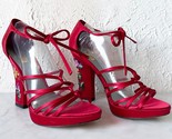 JLo Red Satin Strappy Heels Embroidered Floral Tie Sandals - Women's Size 9-1/2