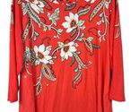 This vibrant red floral top by JM Collection combines comfort and style. Made from a rayon and spandex blend, it offers a relaxed fit with 3/4 sleeves for versatile wear.