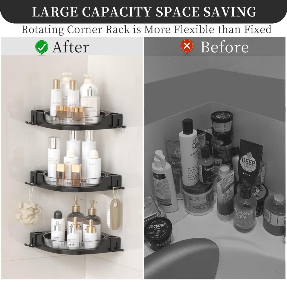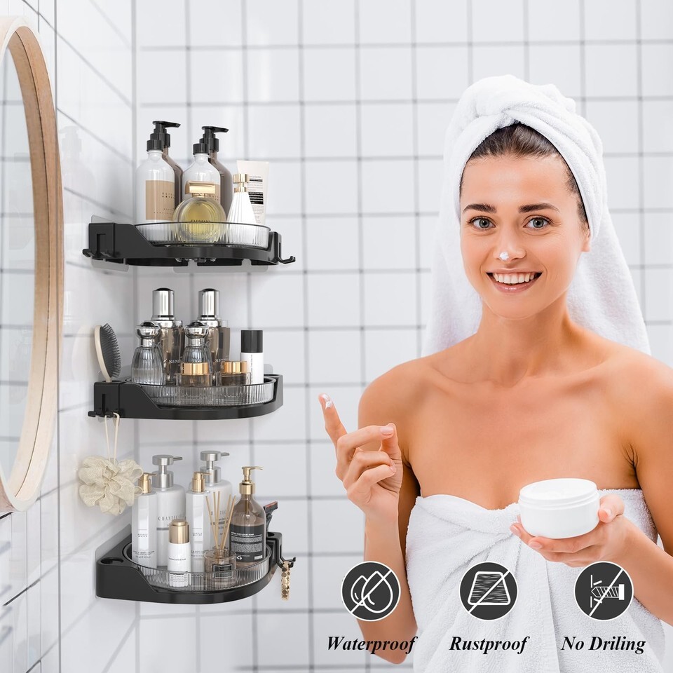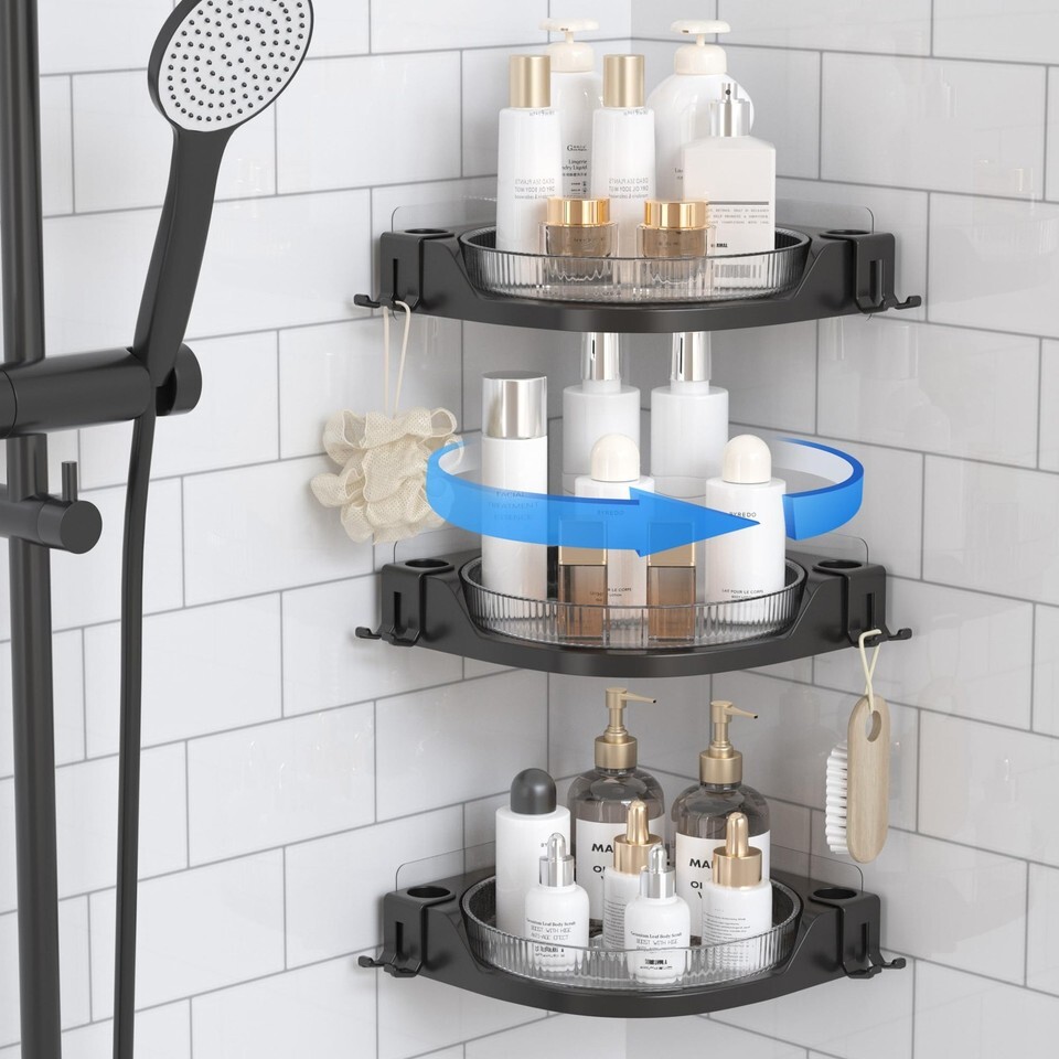 - JNFUZ Corner Shower Caddy 360° Rotating Adhesive Organizer No Drilling