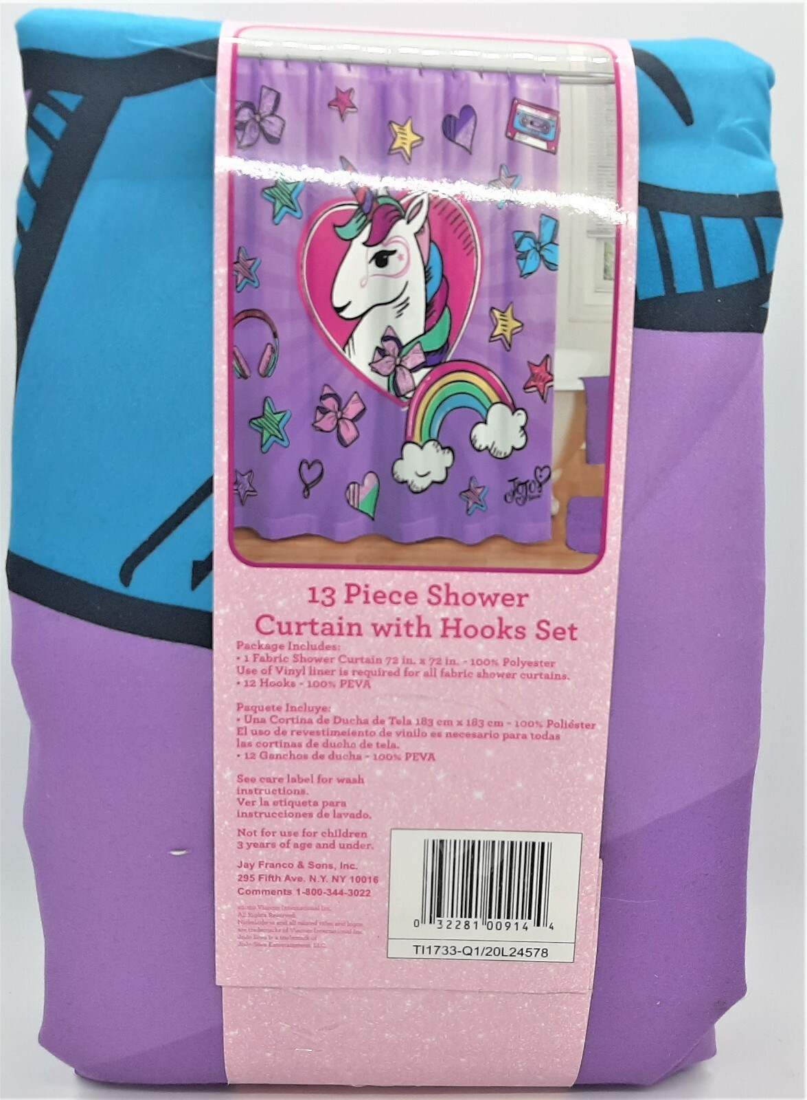 - JOJO Siwa Shower Curtain with 12 Hooks Set by nickelodian ~ 72" x 72" Unicorn
