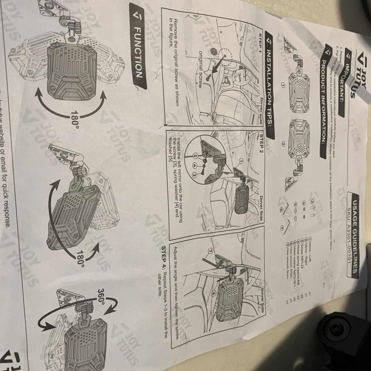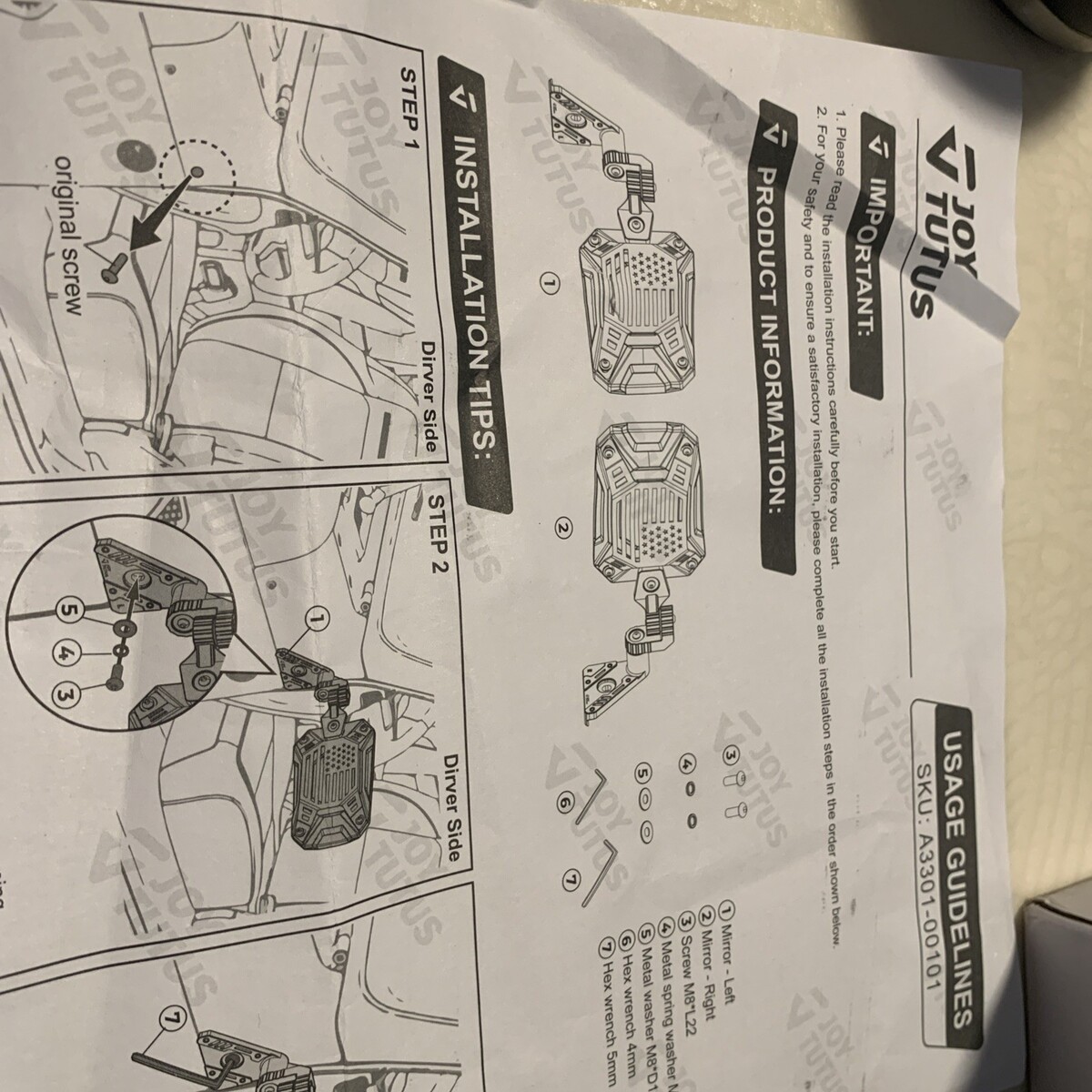 The JOYTUTUS Side Mirrors Doors Off are designed specifically for Jeep Wrangler TJ JK models from 1997 to 2018, including the Unlimited version. These black mirrors come in a set of 2 and include bolts, brackets, glass, plastic, and metal components for easy installation. With a vintage part design and manual operation mode, these standard mirror assemblies feature a convex and rectangular design for optimal side view visibility. Made in China, these A-pillar mounted mirrors weigh 4.22 pounds and are a reliable choice for enhancing the exterior of your Jeep vehicle.