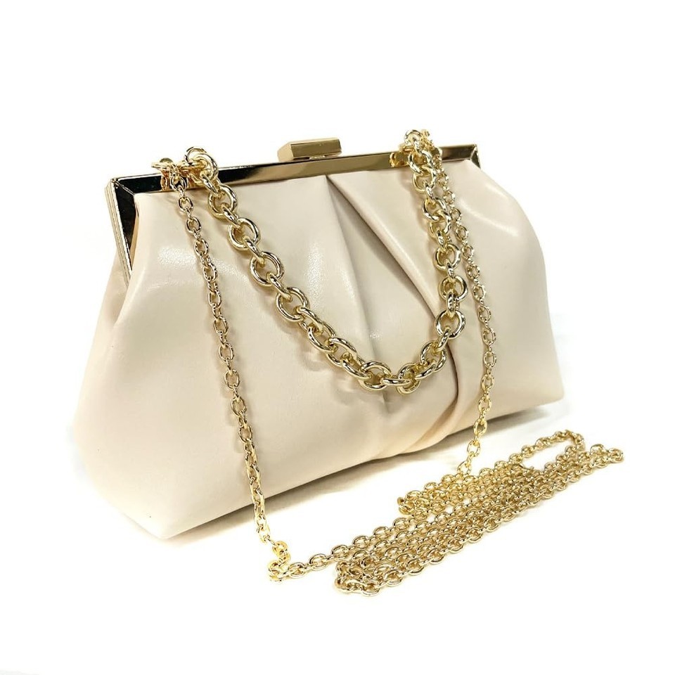 - JRNDNIUO PU Leather Beige Clutch Purse Evening Bag for Women