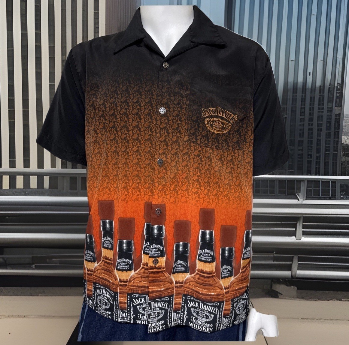 Vintage DRAGONFLY Jack Daniels Bourbon Whiskey Old No. 7 Button Up Shirt