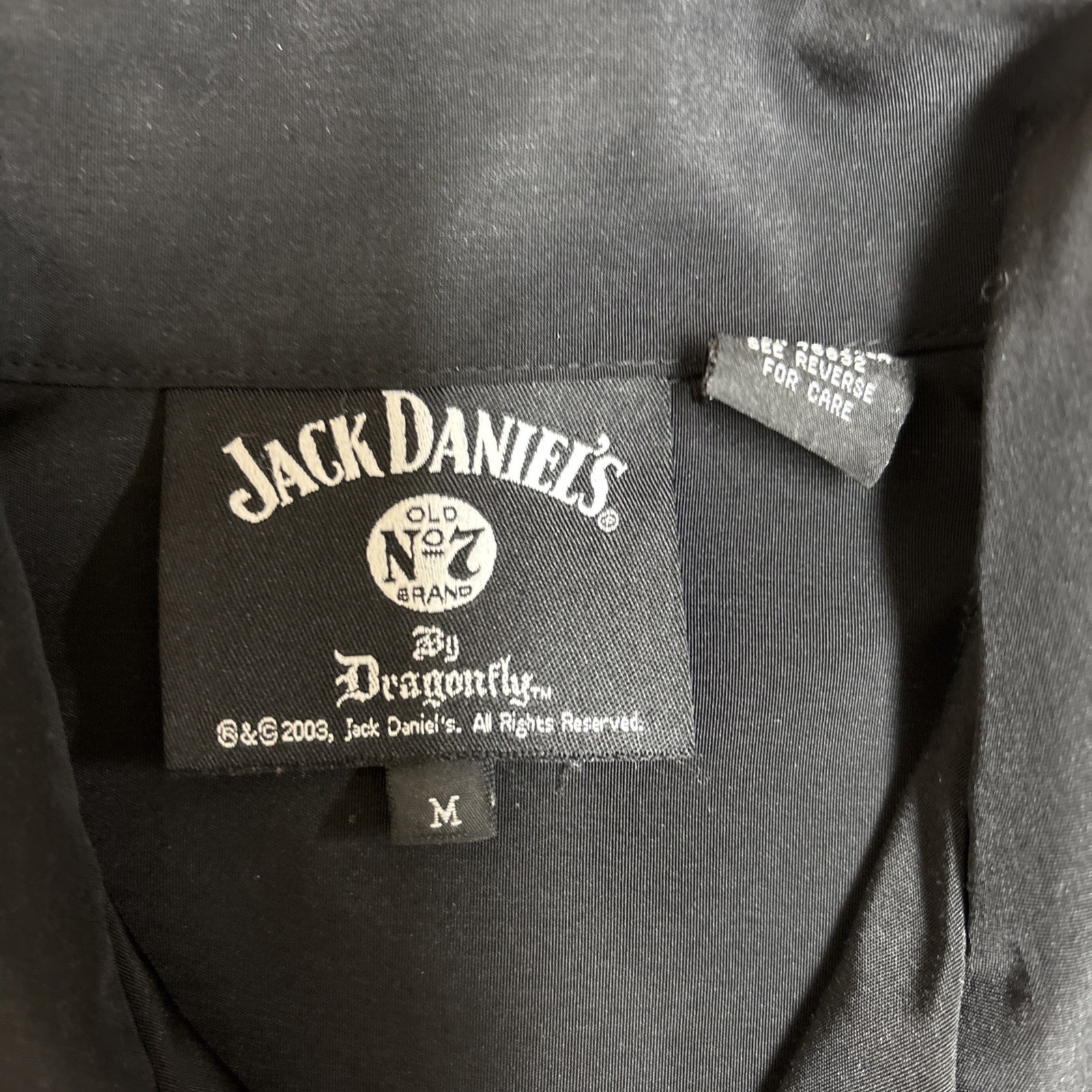 - Jack Daniels Dragonfly Shirt Mens Medium Black Whiskey Border Print Vintage Y2K