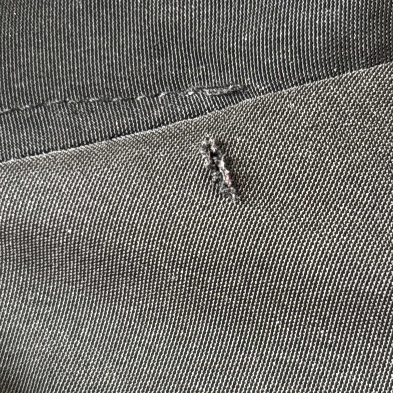 Tiny repair to the right underarm seam and a very small nick to the fabric under the collar (consistent with the manufacturing process cuts to the selvedges.