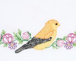 Jack Dempsey Needle Art Finch Lace Edge Pillowcases. Lace Edge Finch Pillowcases. Stamped for Cross Stitch and Embroidery. Contents: One pair standard size pillowcases with lace edge, made of cotton/poly broadcloth, with easy to follow instructions. Ink washes out. 100 Percent made in the U.S.A. Item Number: 1800-949. CHK-1800-949