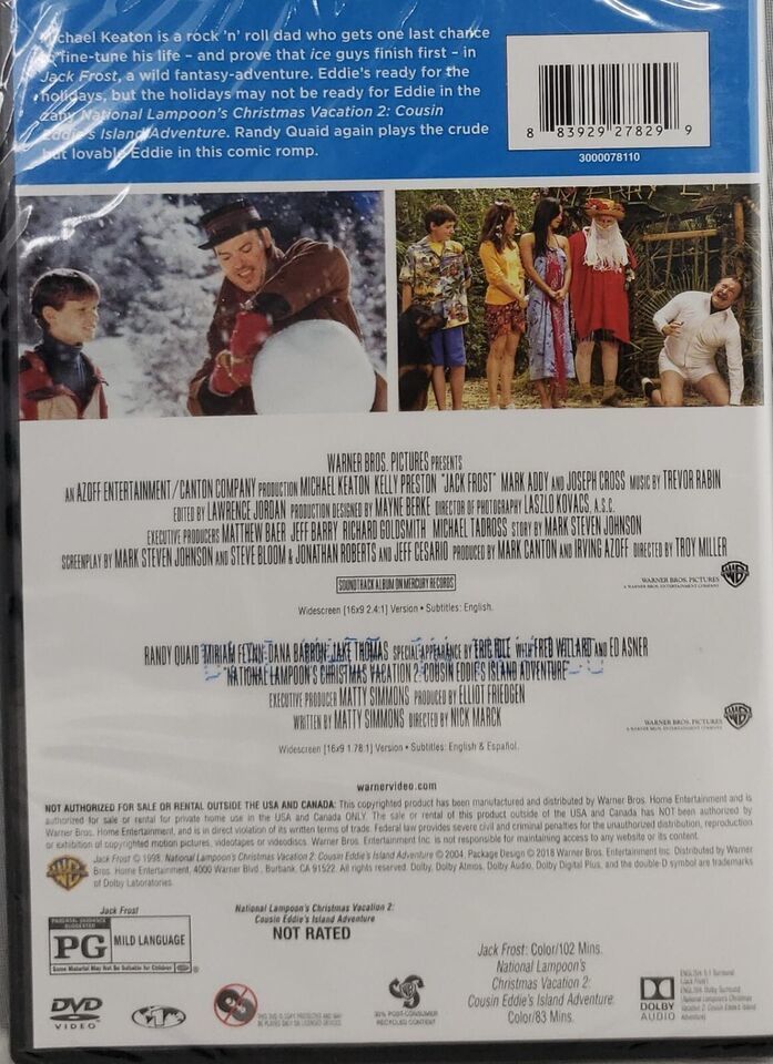 Michael Keaton is a rock 'n' roll dad who gets one last chance to fine-tune his life - and prove that ice guys finish first - in Jack Frost a wild fantasy-adventure frosted with a blizzard of special effects. Eddie's ready for the holidays but are holidays ready for Eddie in the zany National Lampoon's Christmas Vacation 2: Cousin Eddie's Island Adventure. Randy Quaid again plays the crude but lovable Eddie in this comic romp.
