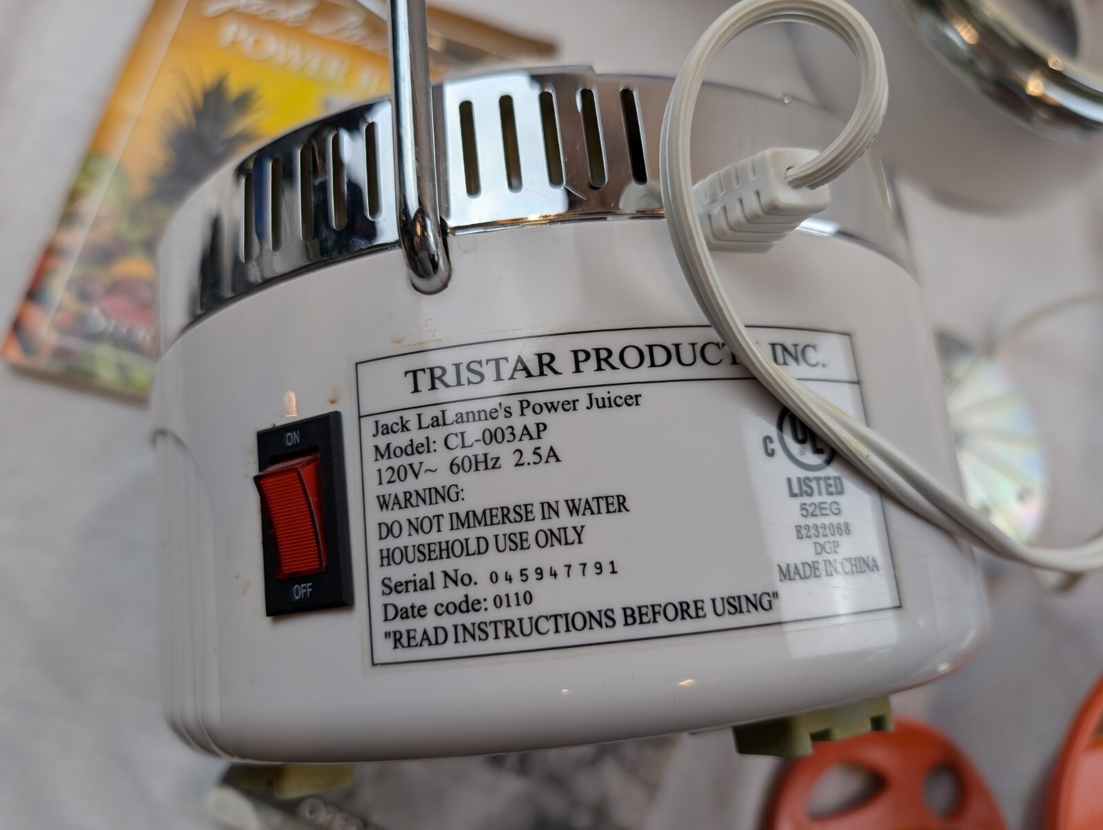 - Jack Lalanne Power Juicer CL-003AP Pulp Extractor White TESTED w/ manuals