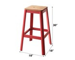 Features: Square Armless Stool (Backless) Wooden Stationary Seat: Natural Finish Metal Leg Crossbar Supports: Red Finish, Powder Coating Timeless design that complements any dcor Adds character to living rooms, bedrooms, or hallways Set Includes: One (1) Bar Stool