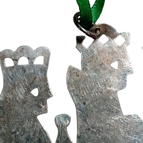 Authentic James Avery Sterling Silver Christmas Ornament- 3 Kings/Nativity design. It is Hallmarked with the James Avery candelabra "JA" logo and STERLING SILVER mark (.925).Ornament shows three kings on way to manger. Also included are the original box, blue felt pouch and card telling Avery history and cleaning instructions.on the ornament This is in vintage used condition meaning there is going to be some light surface scratches and perhaps some gentle tarnish consistent with its age. There are no breaks, cracks or repairs on it.It is easily cleanable and would polish up quite nice with a good silver polish, however I wanted that decision to be the new owners choice.Please review all pictures closely. The piece weighs about 16 grams and is 2.75" Height X 2.50" wide. This retired 1974 ornament design is highly sought after by Avery collectors who value original packaging, authentic pieces and nicely made ones.This one is one of the lowest prices you will find it at and most dont have the original box, pouch and info card like this one does. Ornament ships quickly and packed with care. Each package is always wrapped carefully and securely to make it to your door in the same condition. Every purchase also has a free gift or token of my appreciation the more you spend or more purchases make the better the gift gets