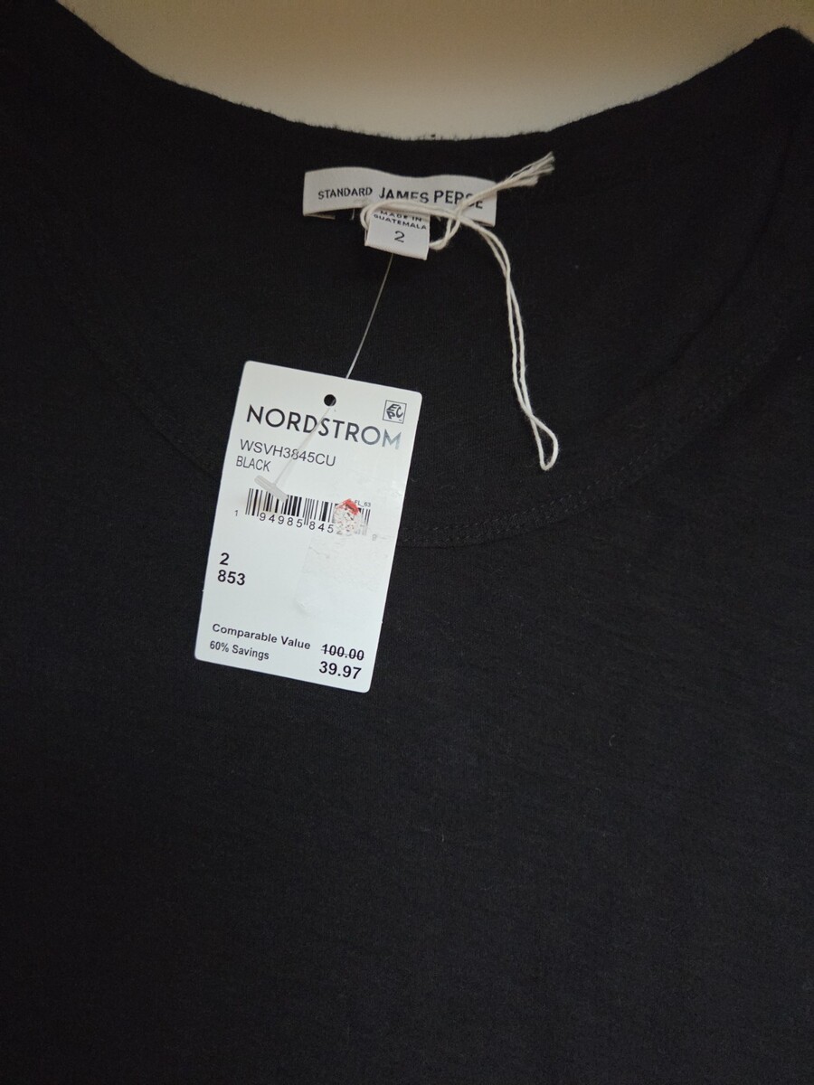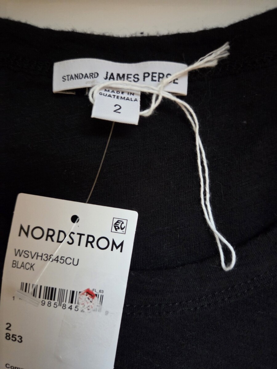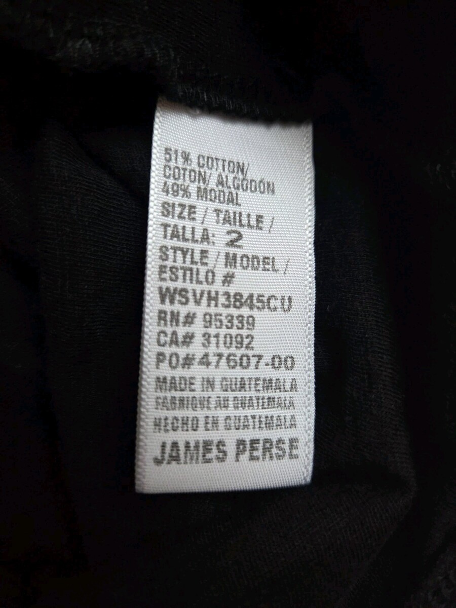 James Perse Womens Muscle Tank Tee T-Shirt, Sz 2 Med Black Cotton/Modal Slub New