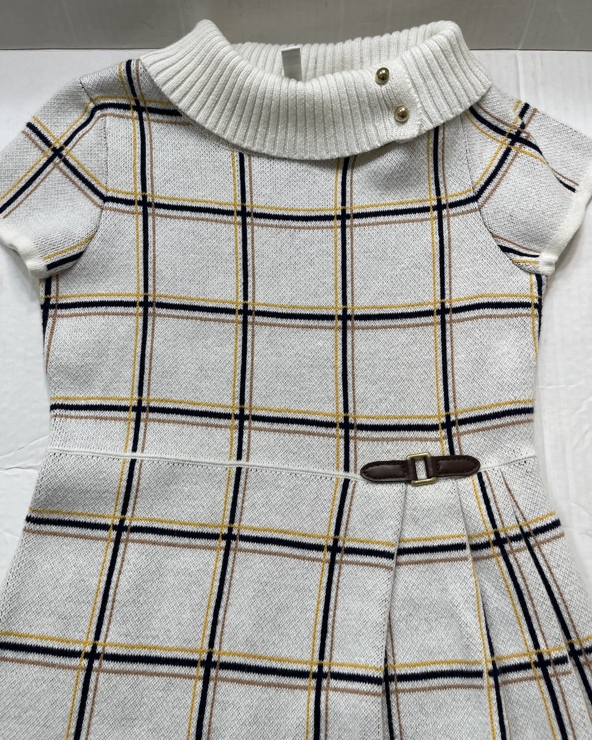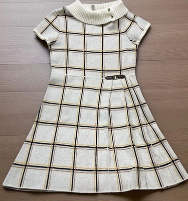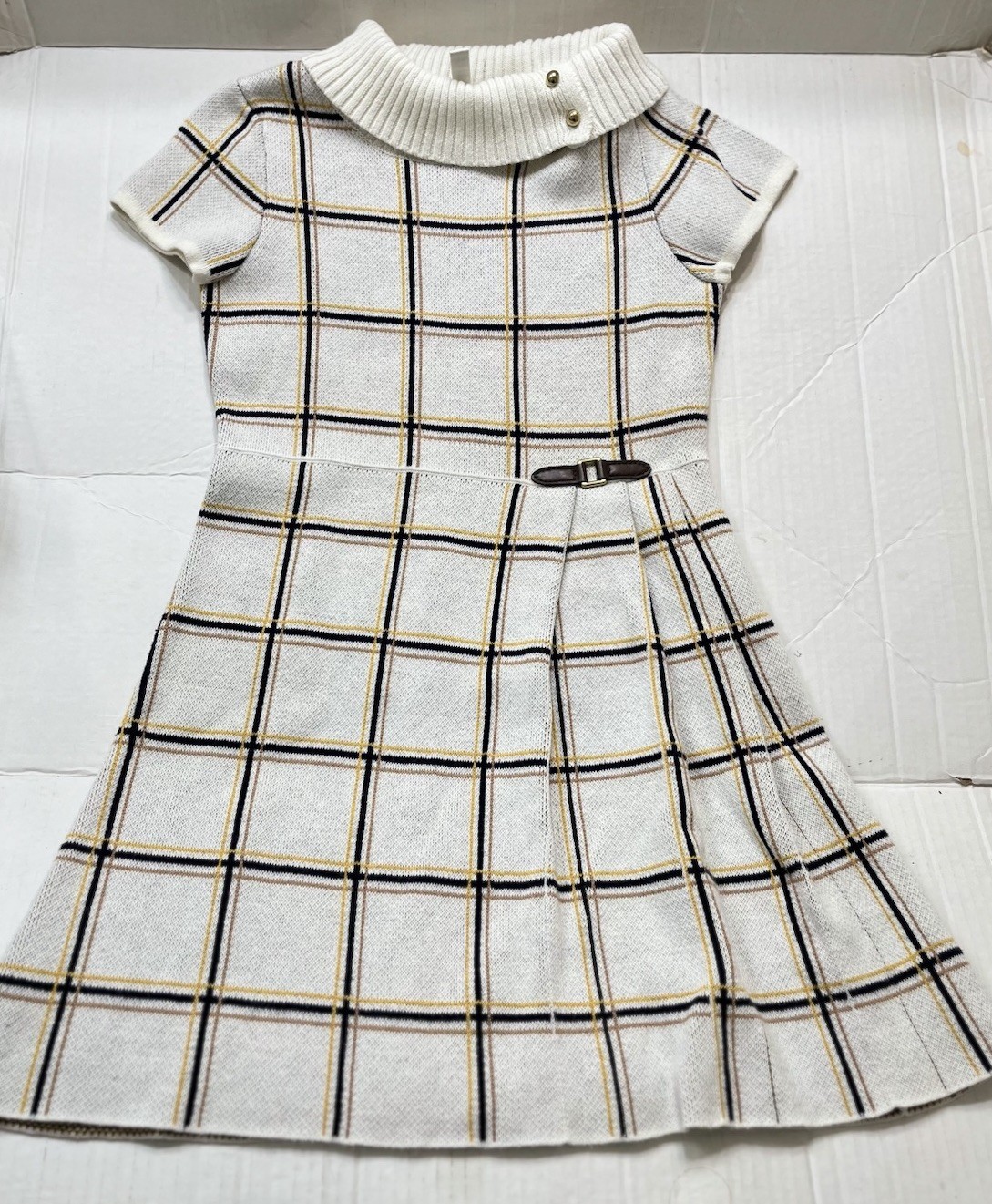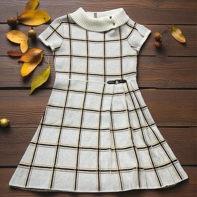 Janie and Jack Girls Size 7 Sweater Dress short sleeve cream yellow brown buckle