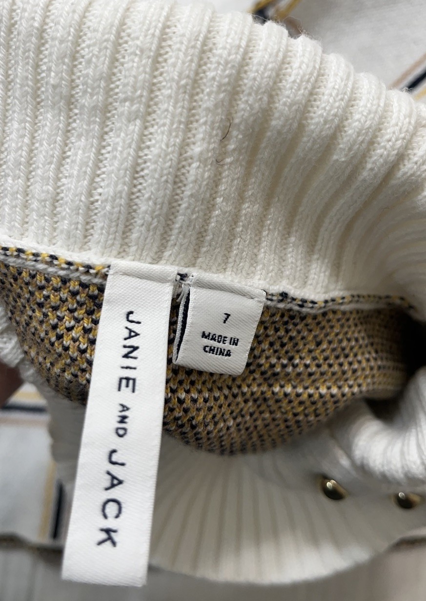 - Janie and Jack Girls Size 7 Sweater Dress short sleeve cream yellow brown buckle