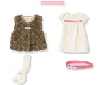 - Janie and Jack baby girl "All in Bow"Sherpa Vest/Dress/Tight/Toy 4pc Set 3-6m