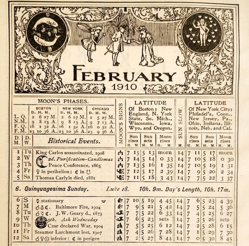 - January February 1910 Calendar Page Moon Phase Sun Double Side Ephemera ADBN1eee