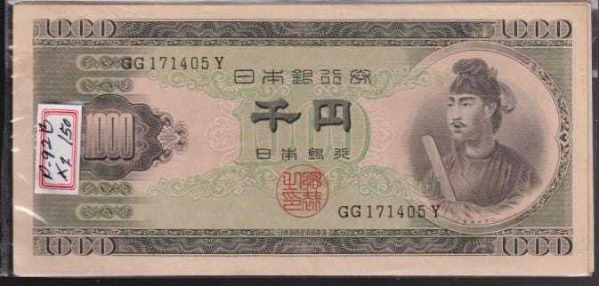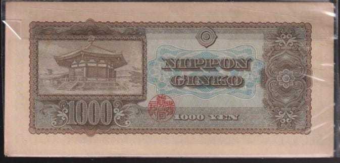 - JAPAN 1951 Nippon Ginko 1000 Yen SAMAURI Note. Beautiful, Crisp UNCIRCULATED!