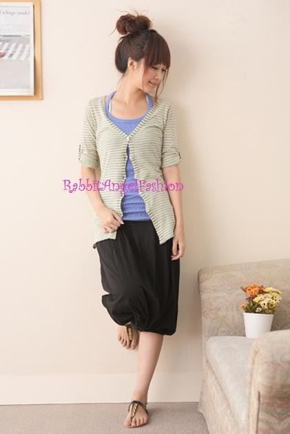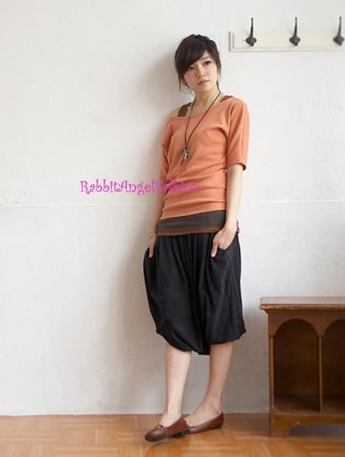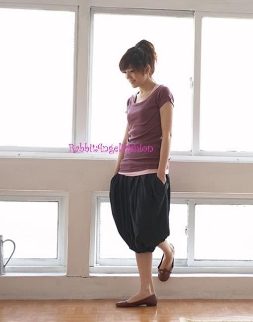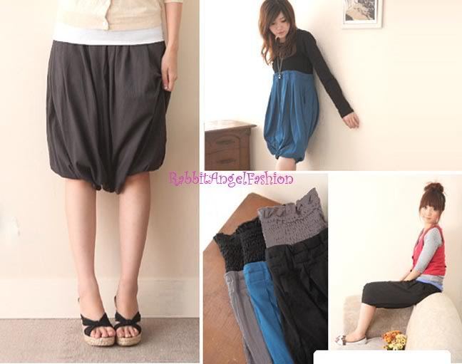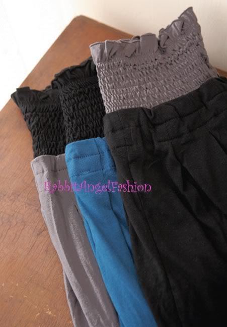 - Japan Style Smocked Waist Pleated Slouch Bubble Pant Skirt! Black