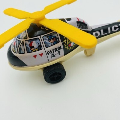 The Vintage Tin A-1 Patrol Police Helicopter Friction Toy is a nostalgic collectible from Japan, featuring a classic design that is sure to bring back memories for those who grew up playing with similar toys. Made of durable tin material, this toy is designed to withstand hours of playtime and is perfect for children aged 4-7 who enjoy imaginative play scenarios. With its police character theme and friction-powered mechanism, this vintage toy offers a sense of nostalgia and charm that is hard to come by in today's world of modern toys. Helicopter is in nice condition for age with some light play/paint wear present. Helicopters friction function works as should and it rotates the blade as well. Please see pictures for more details. Be sure to check out my store for more. Add 3 or more items to cart and save 20%! Thanks for viewing.