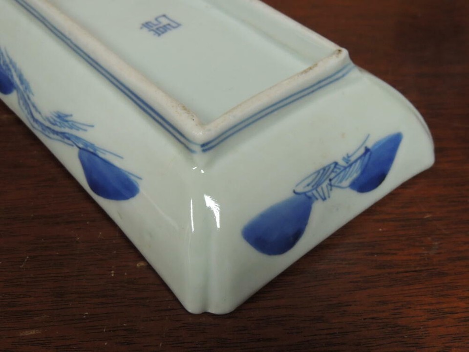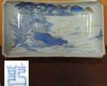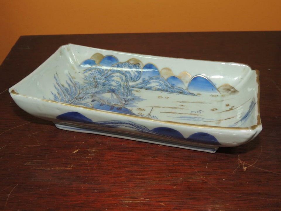 - Japanese Dish/ Tray 7.5"x4.5" Blue Gold White Arita Edo Ken Qianlong rectangular
