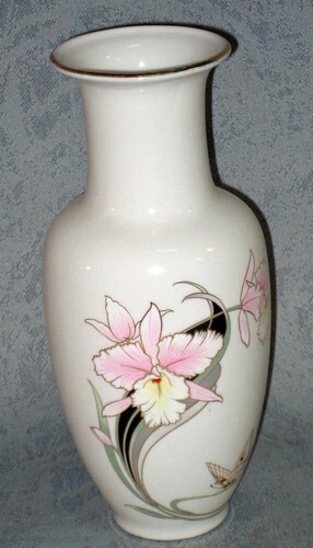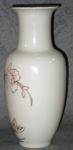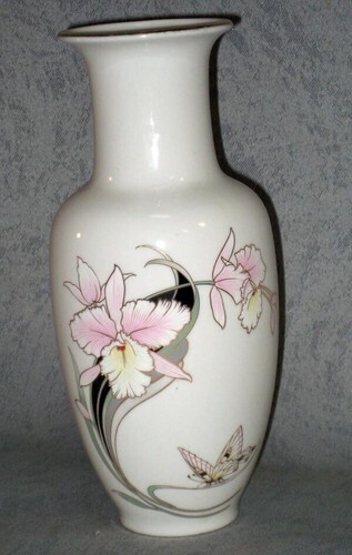 Beautiful Vintage Japanese Fine China Tall Orchid Flower and Butterfly Vase