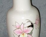 - Japanese Fine China White Vase Orchid Butterfly Pink Black Gold Trim 10" Vintage