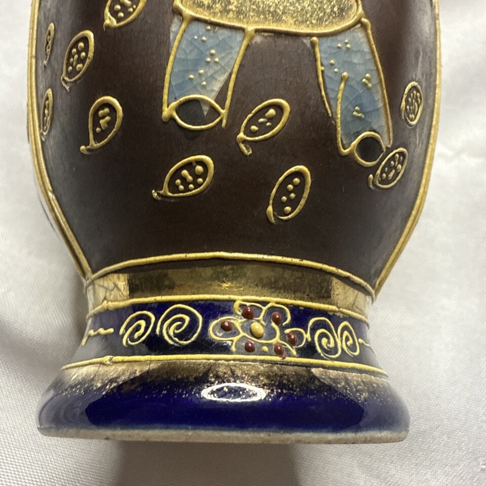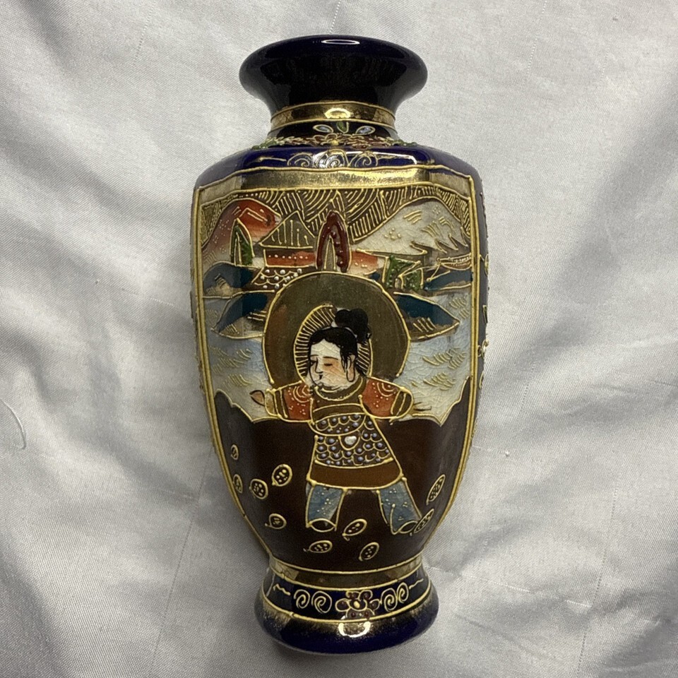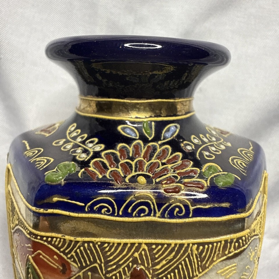- Japanese Satsuma Style 4.75” Cobalt Blue Vase Gold Raised Textured