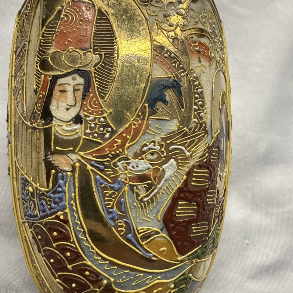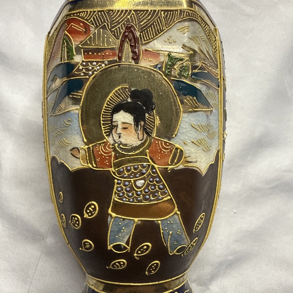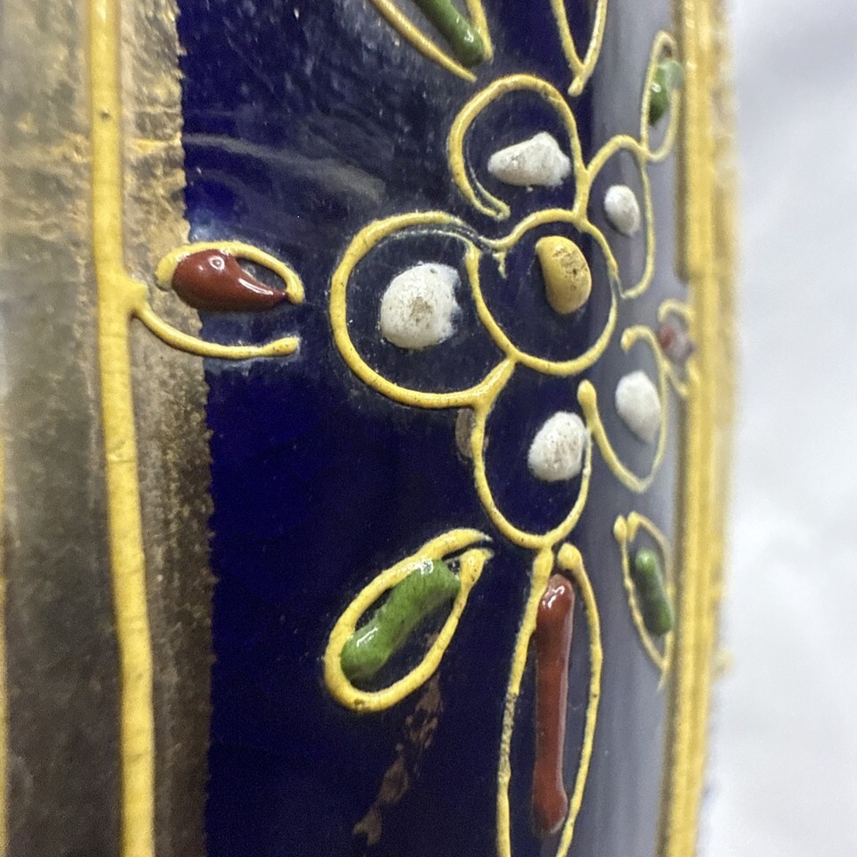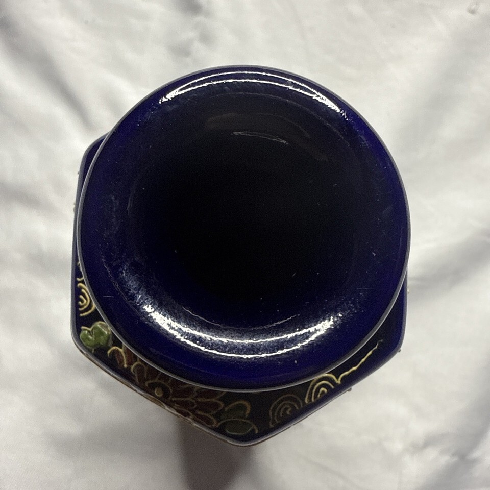 - Japanese Satsuma Style 4.75” Cobalt Blue Vase Gold Raised Textured