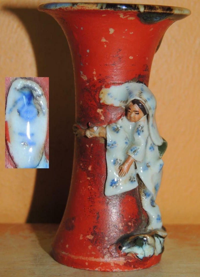- Japanese Sumida Gawa Vase 3.5" woman geisha drip glaze Ishiquro Koko miniature