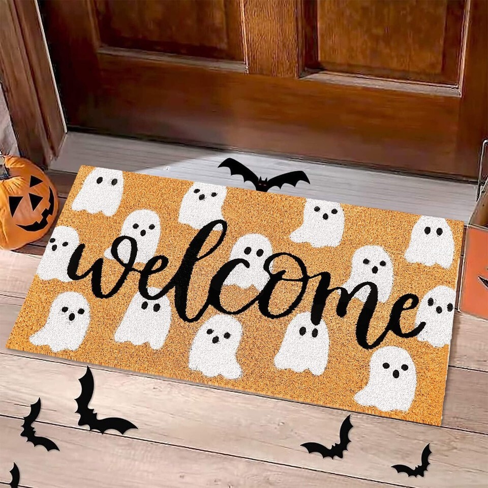 CUTE DESIGN: Our doormat patterned with white little ghosts, printed with letters welcome, cartoon lovely and rustic, echo well with the Halloween, which will inject more vitality and fun to your home decor.