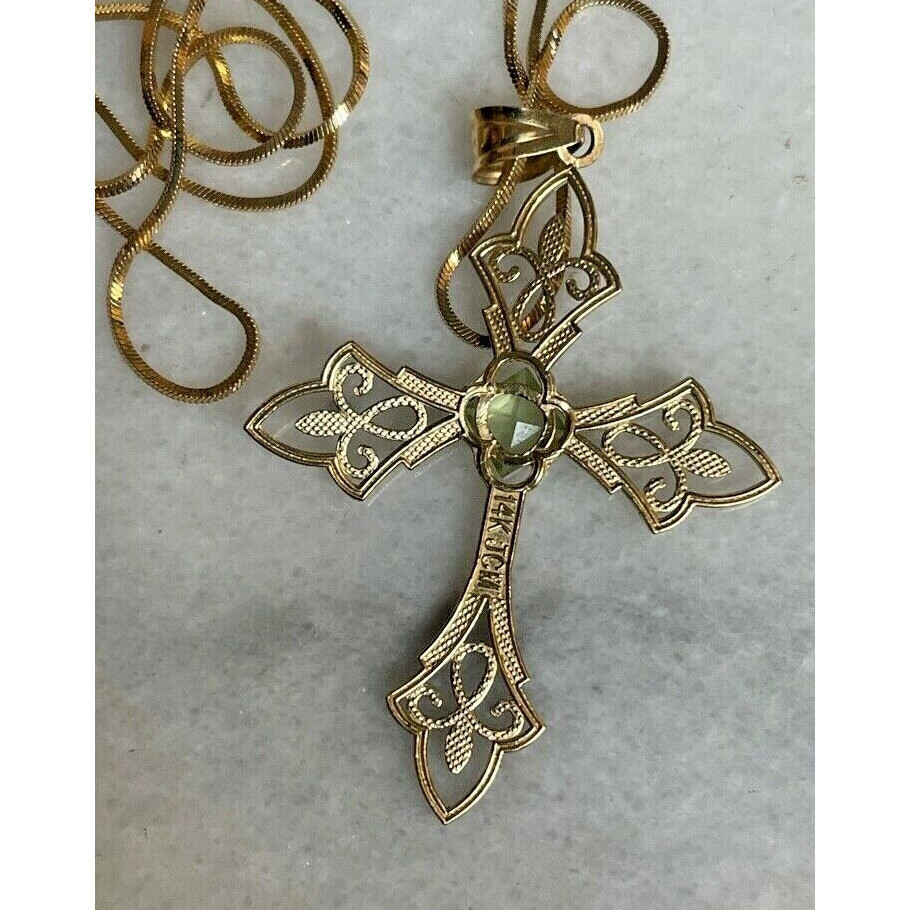- JCM 14K YELLOW GOLD FILIGREE AQUAMARINE CROSS PENDANT NECKLACE SKY