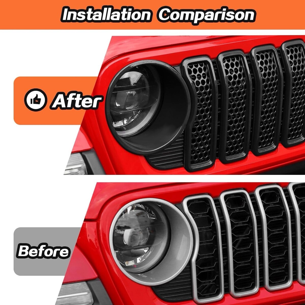 - JeCar Mesh Grill & Headlight Trim Kit for Jeep Wrangler JL 2024+ (Black C)