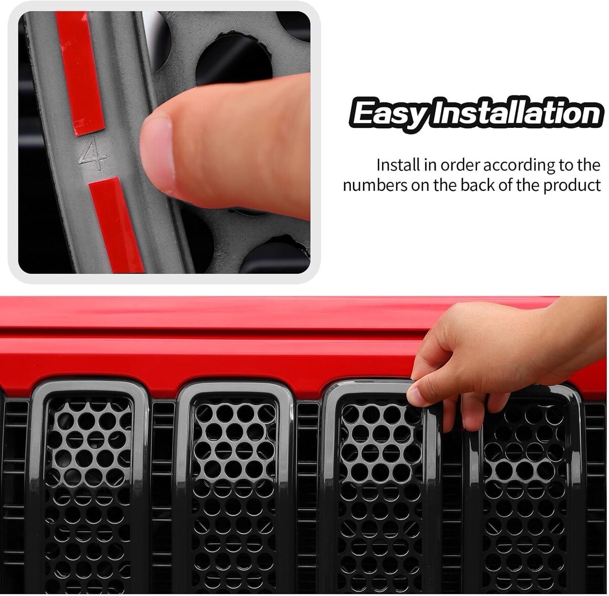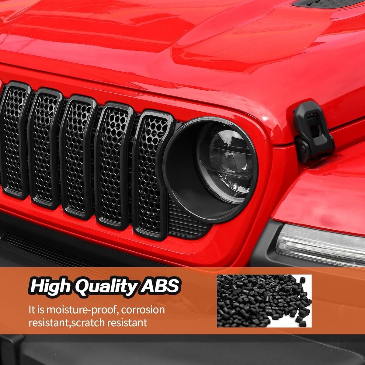 This 9-piece kit includes honeycomb grill inserts and headlight rings in a durable gloss-black finish. These trims are made from high-quality ABS for strong durability, weather resistance, and long-term stability.