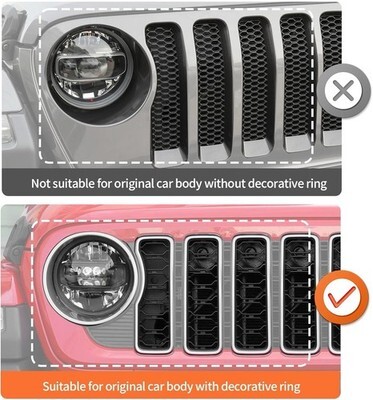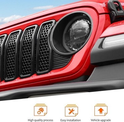JeCar Mesh Grill Inserts Headlight Trim Kit for 2024+ Jeep Wrangler JL (including 4xe, Willys, Sport, Sahara, Rubicon models). Designed to personalize your Jeep?s front end with a more aggressive, custom look.