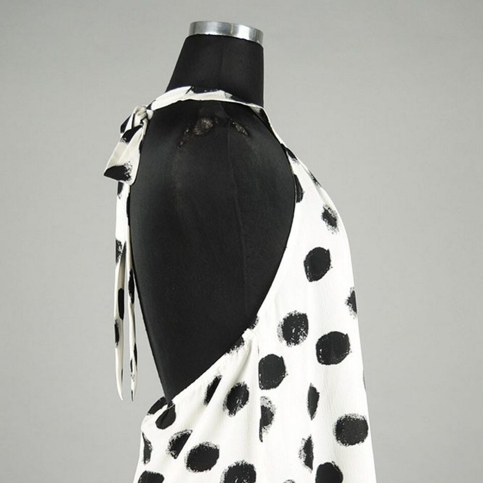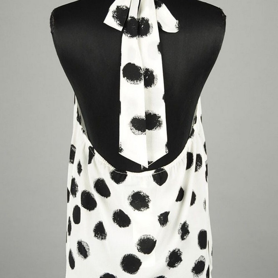 Jealous Tomato Women's Halter Polka Dots Open Back High Neck Top