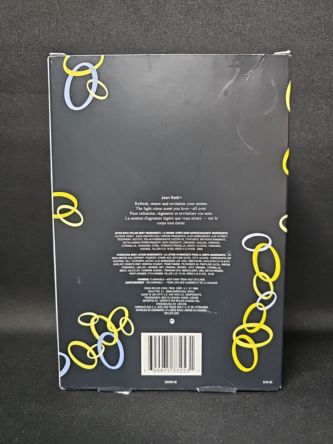UP FOR SALE: Refresh your senses with this sealed Jean Nate by Revlon gift set featuring two timeless classics ? the After Bath Splash Mist and the Hydrating Body Lotion.