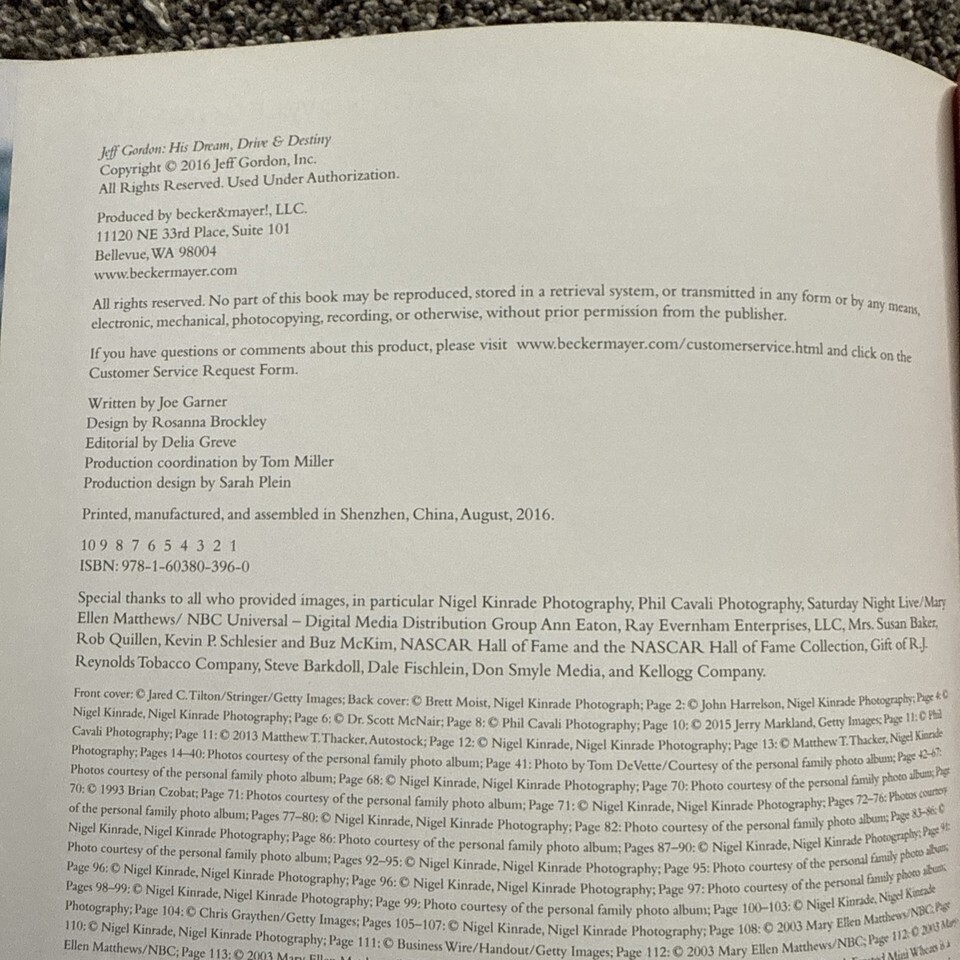 - Jeff Gordon: His Dream, Drive & Destiny by Joe Garner 2016 Hardcover