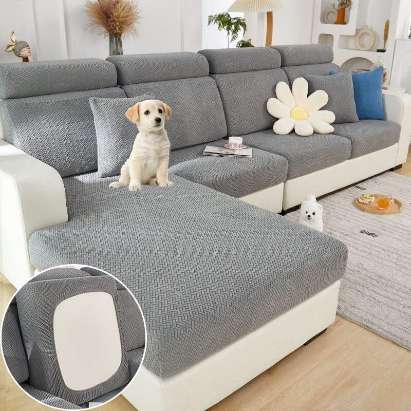 - Jejiakell Universal Wear-Resistant Sofa Cover 360° Elastic Anti-Slip Grey