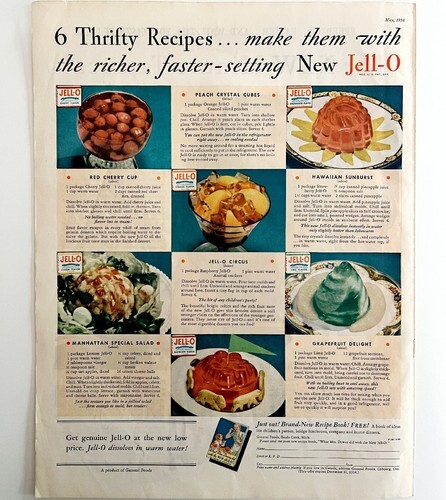 - Jell-O Dessert 6 Thrifty Recipe 1934 Advertisement Full Page Lithograph DWU1