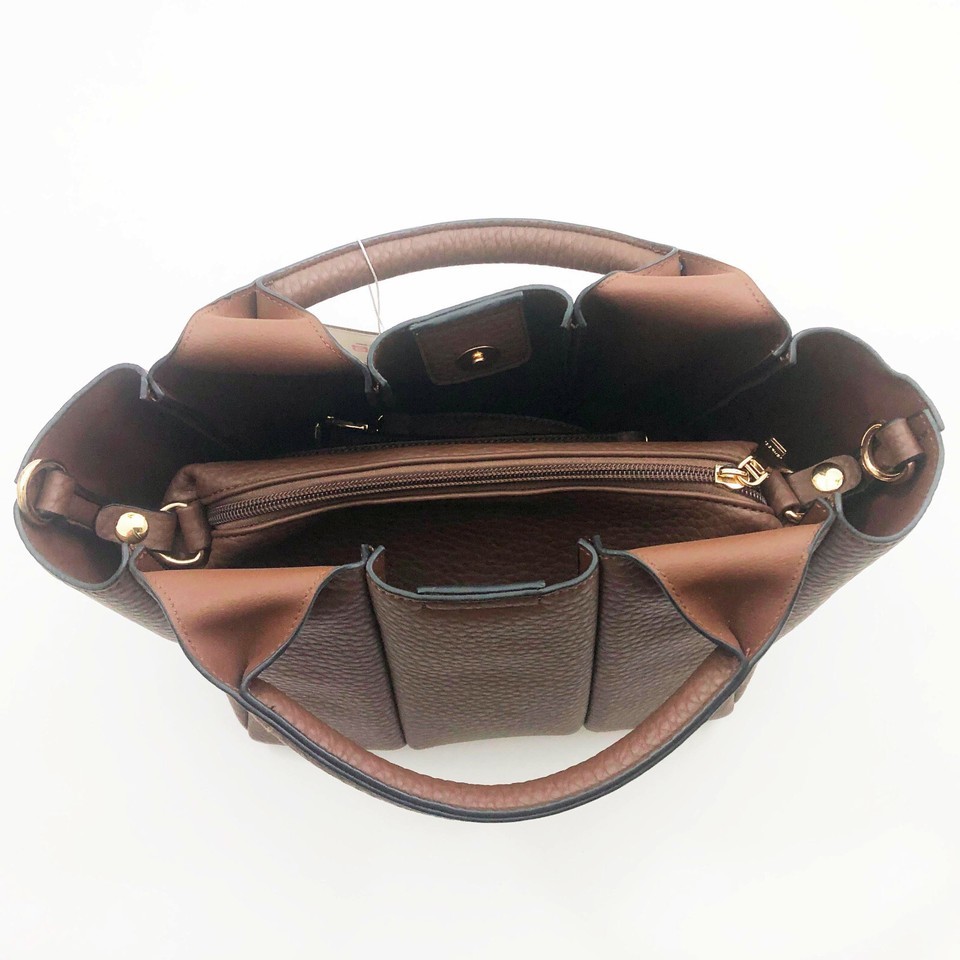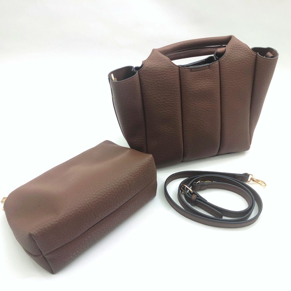 - Jen & Co. Maddox Pleated Satchel Bag in a Bag Chocolate Vegan Leather