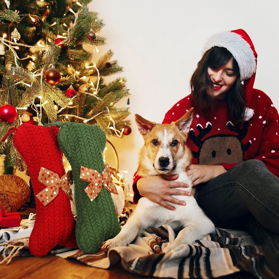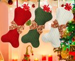 - Jerify 3 Pc Dog Christmas Stocking Bone Shape White Knitted Xmas Decor